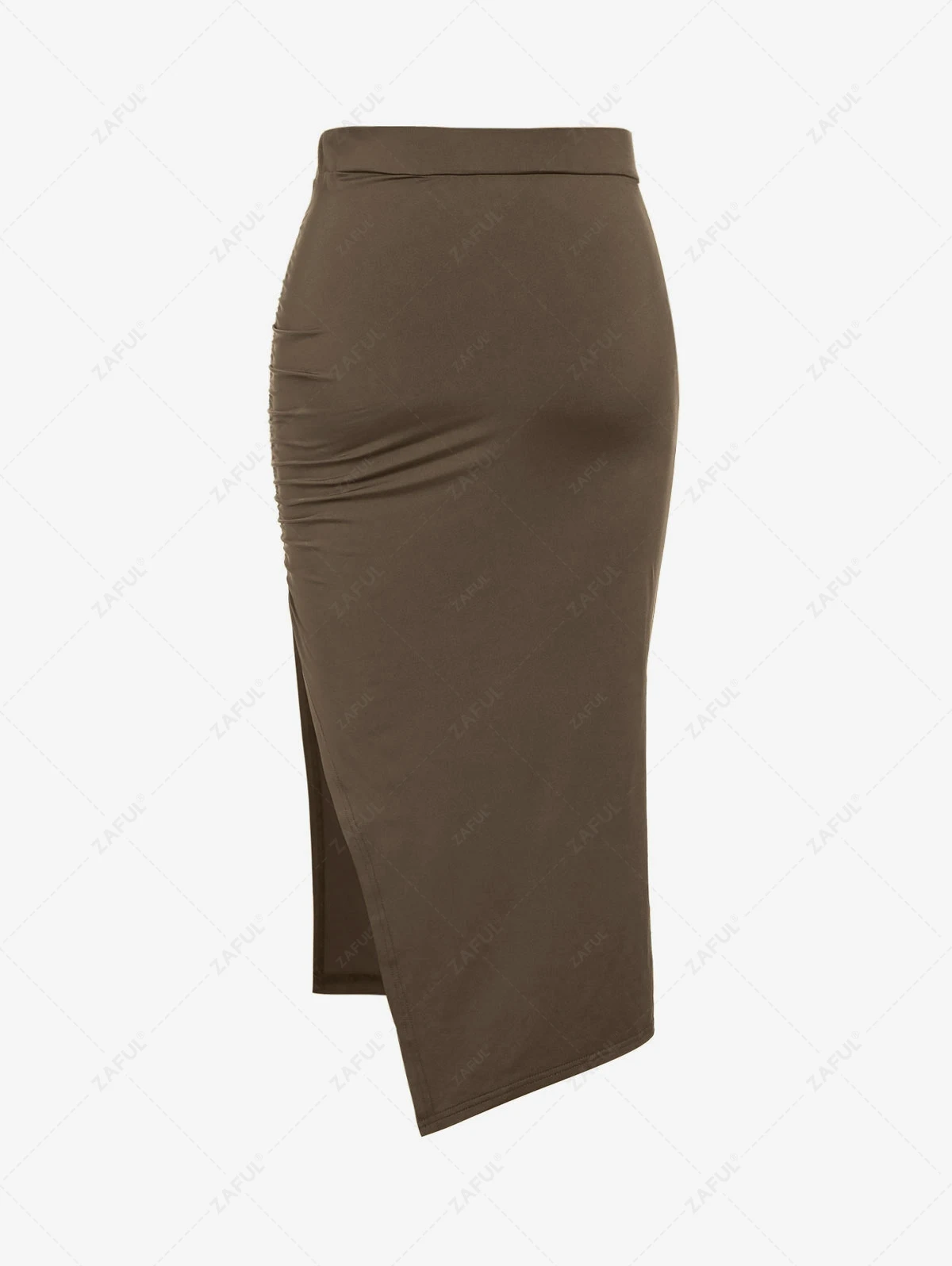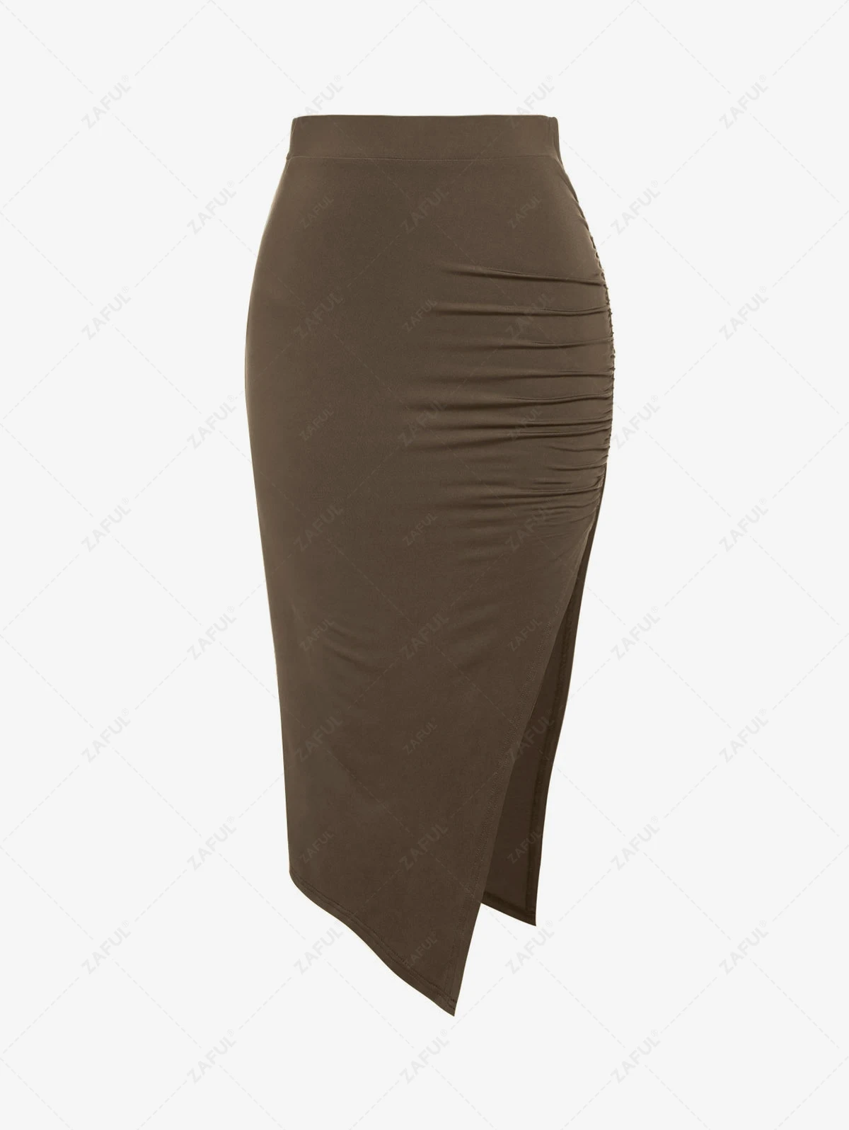 ZAFUL Ruched Thigh Split Bodycon Skirt (High Stretch Fabric)