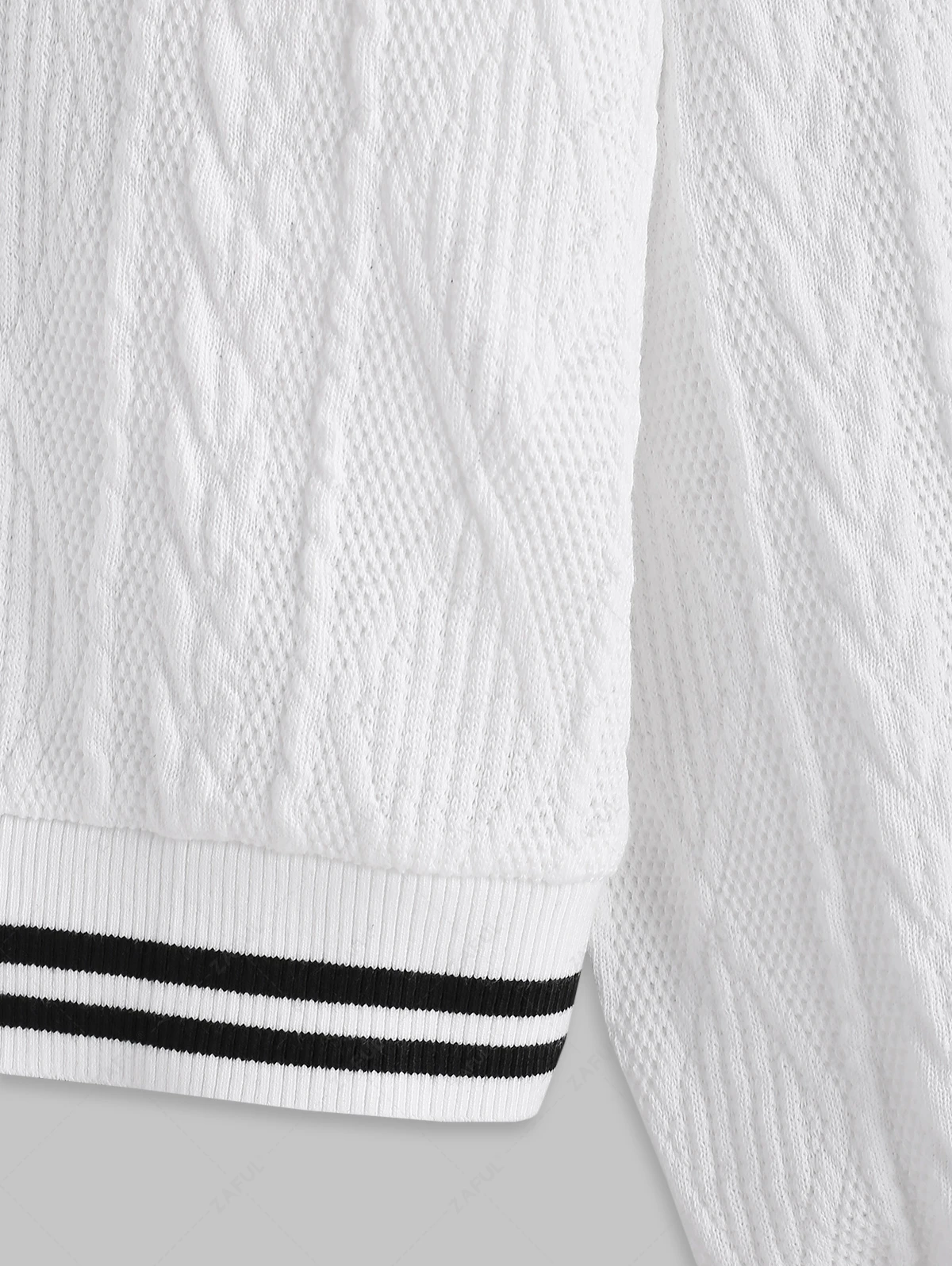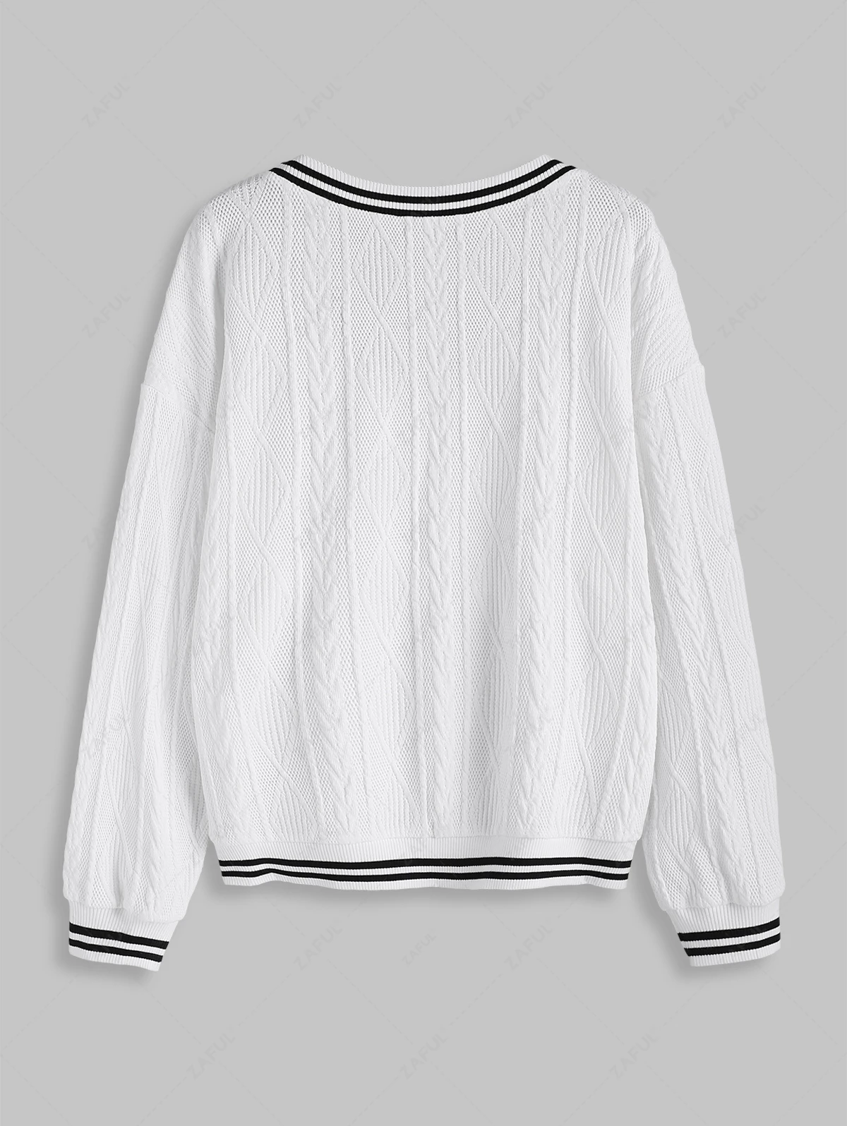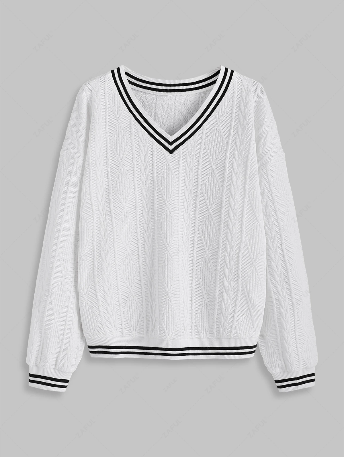 ZAFUL Women’s Varsity Preppy Style Daily Stripes Panel V Neck Cable Fisherman Knit Drop Shoulder Loose Long Sleeve Pullover Jumper Sweater