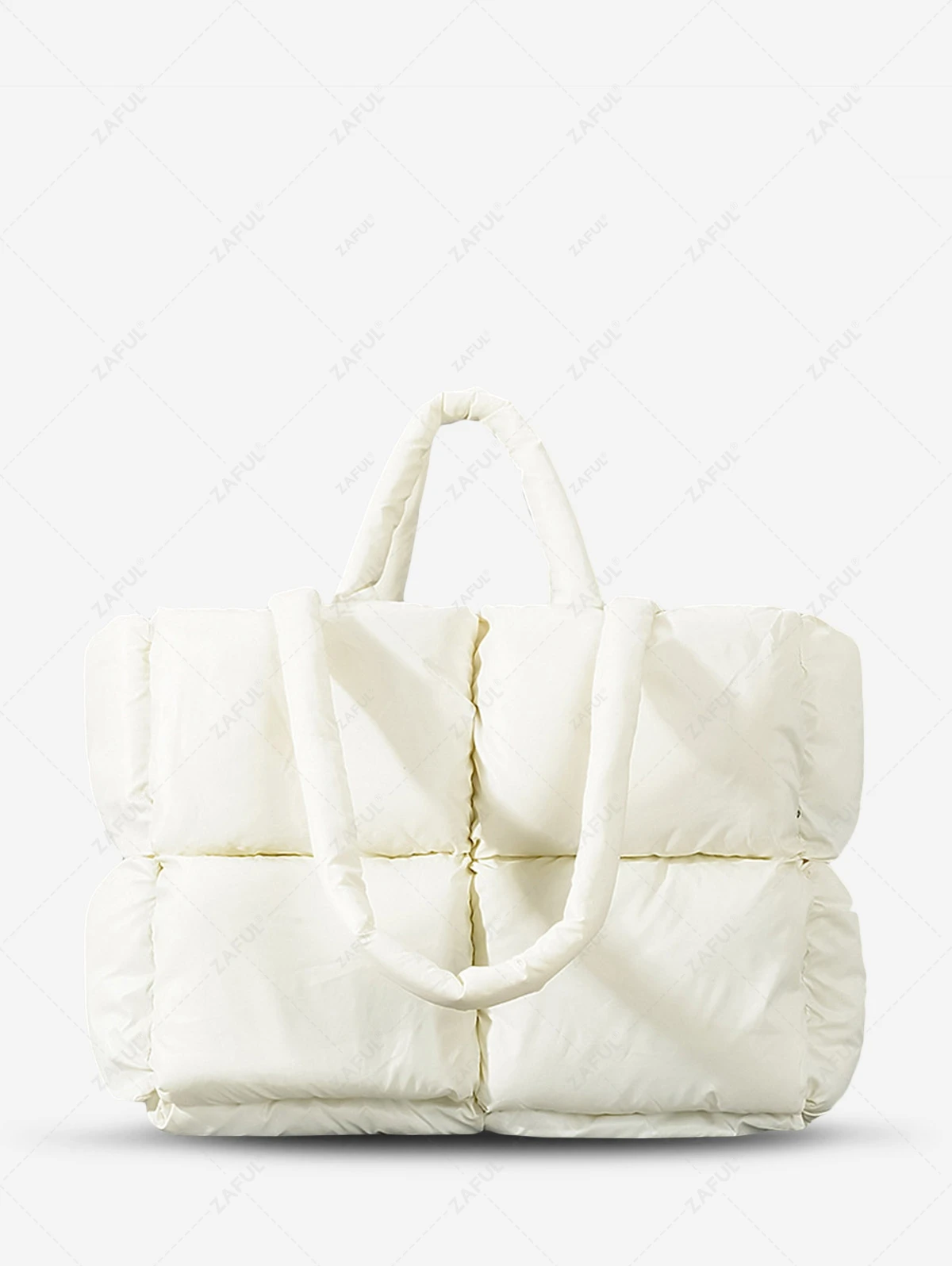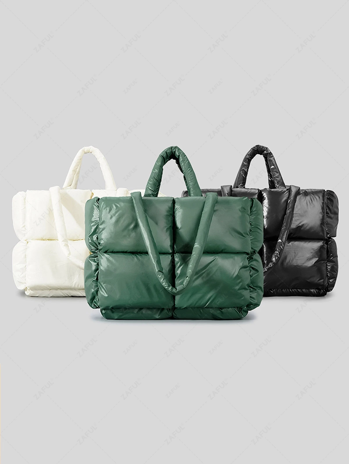 Women’s Simple Style Solid Color Puffer Down Cotton Quilted Tote Bag