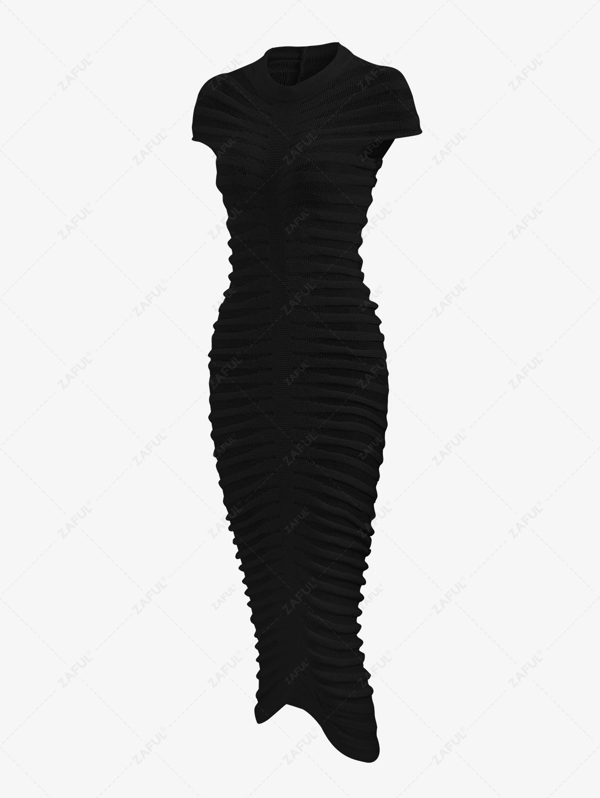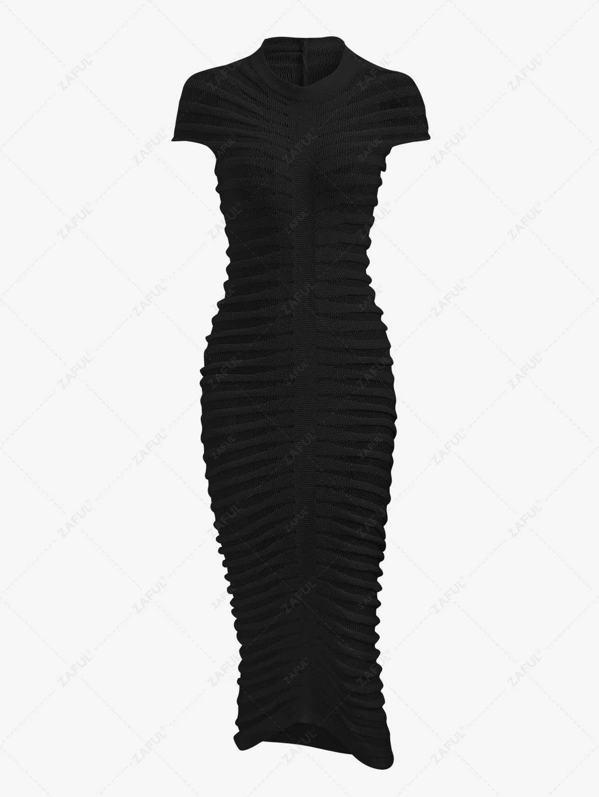 Women’s Sexy Knitted See Thru Mock Neck Cap Sleeve Solid Color Midi Bodycon Dress