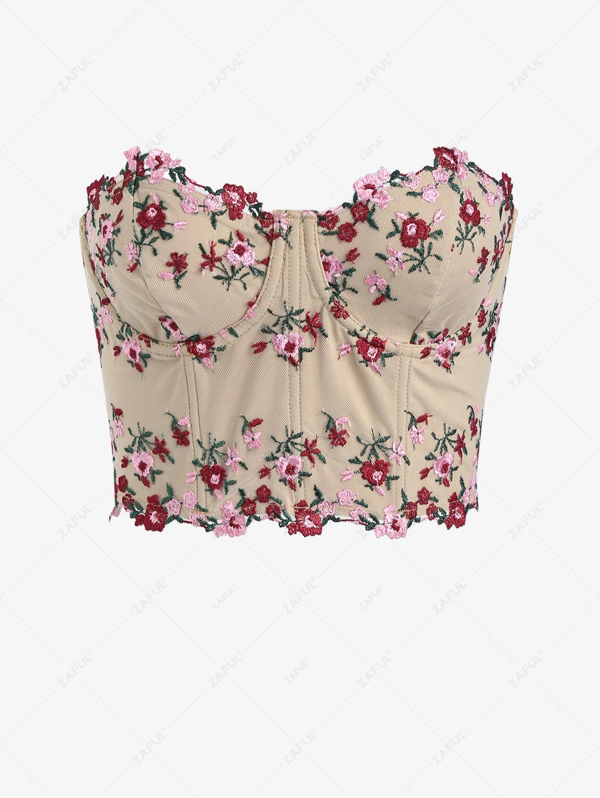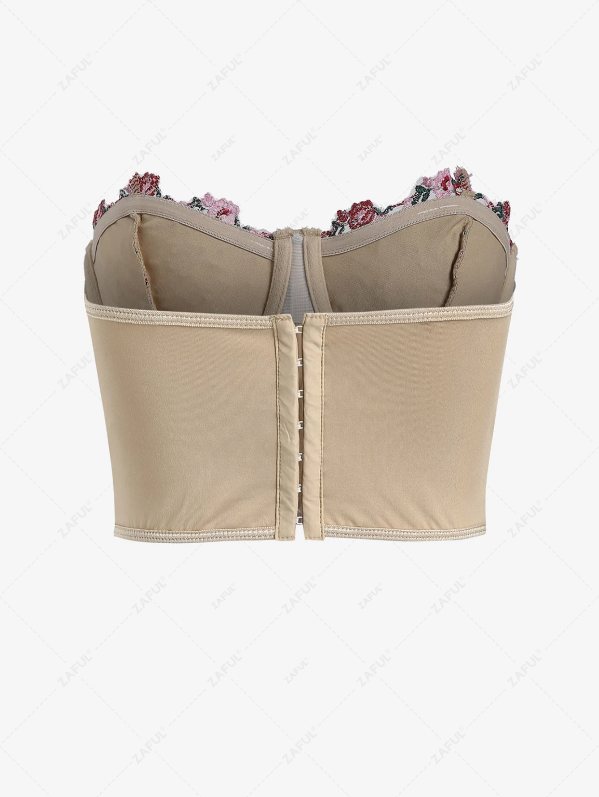 Women’s Sexy Embroidered Floral Hook Back Crop Corset Style Bustier Bandeau Tube Top