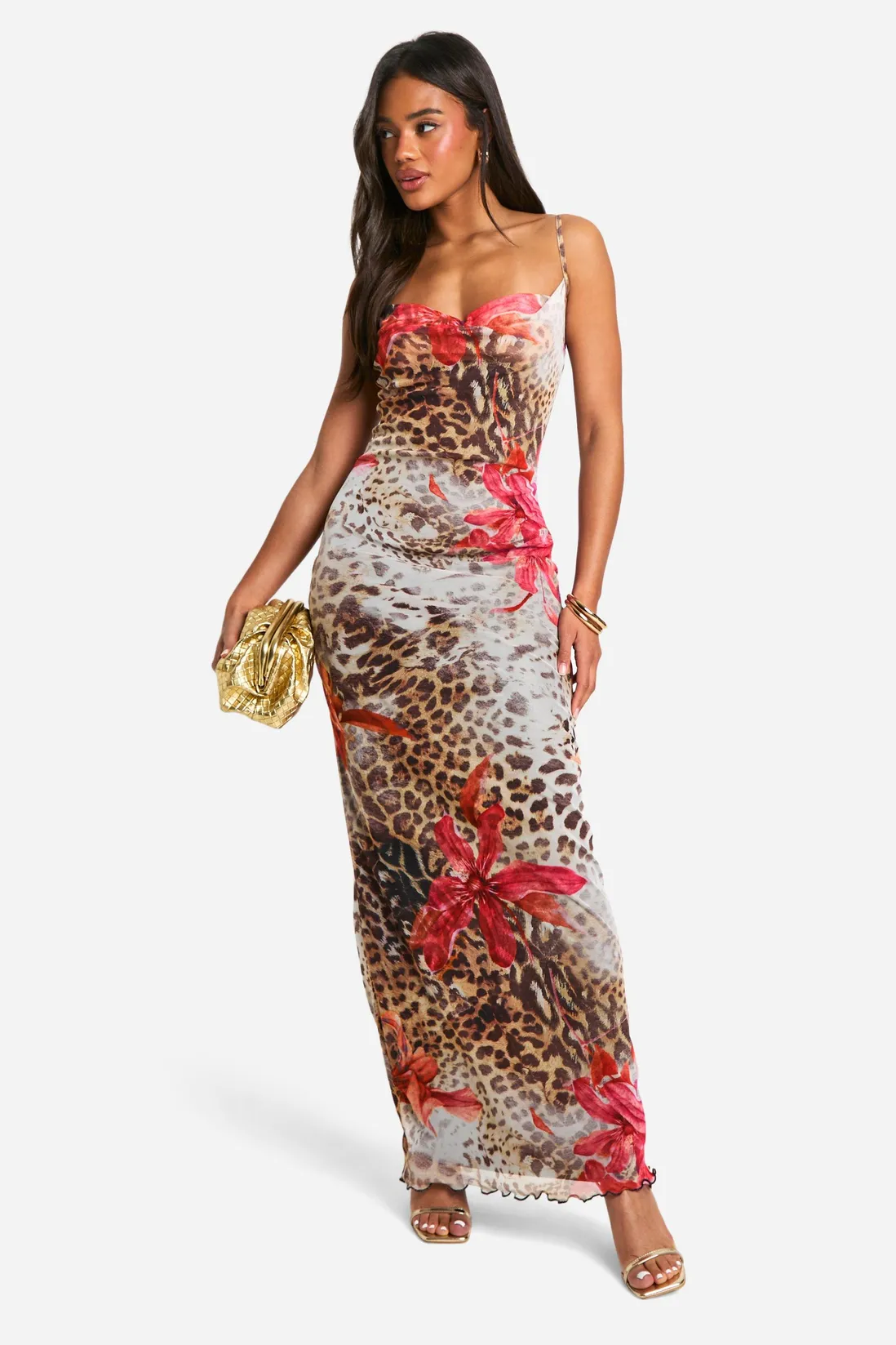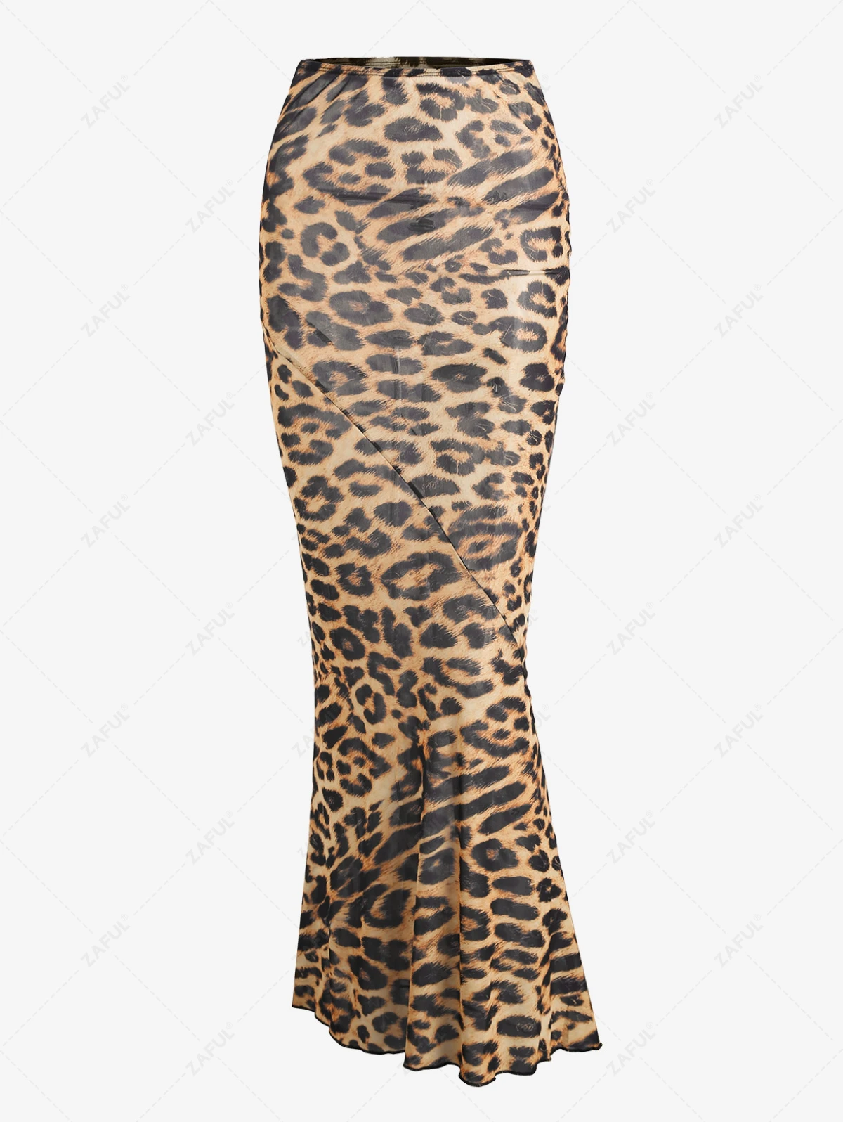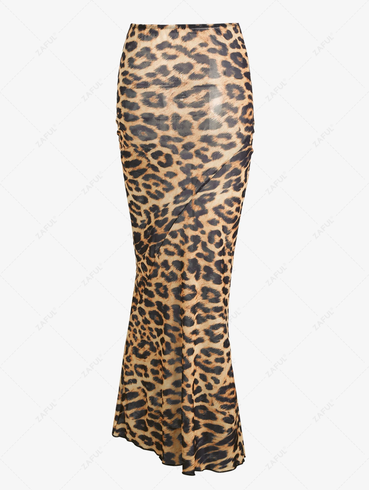 Women’s Sexy Leopard Print Chiffon Maxi Mermaid Skirt