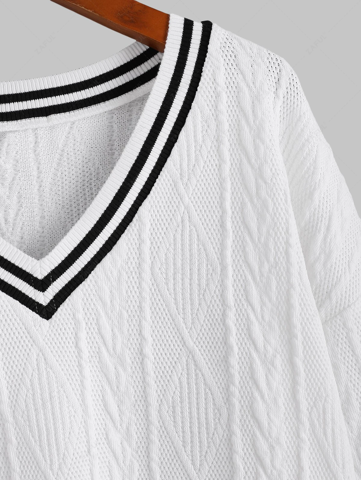 ZAFUL Women’s Varsity Preppy Style Daily Stripes Panel V Neck Cable Fisherman Knit Drop Shoulder Loose Long Sleeve Pullover Jumper Sweater