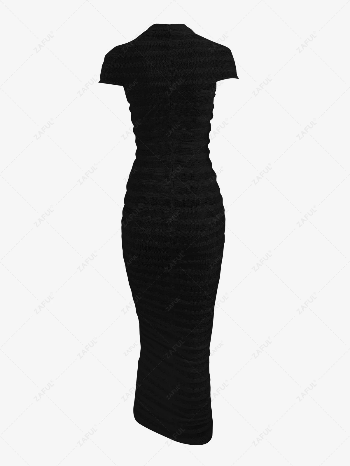 Women’s Sexy Knitted See Thru Mock Neck Cap Sleeve Solid Color Midi Bodycon Dress