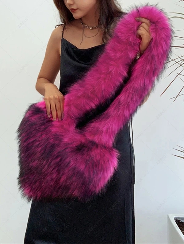 Women’s Y2K Statement Oversized Heart Shaped Faux Fur Fluffy Crossbody Shoulder Bag