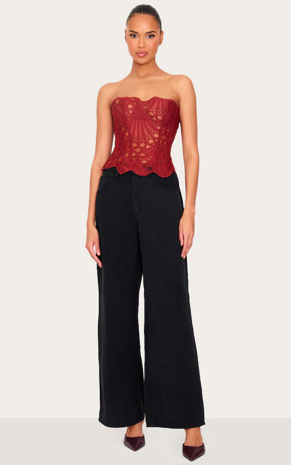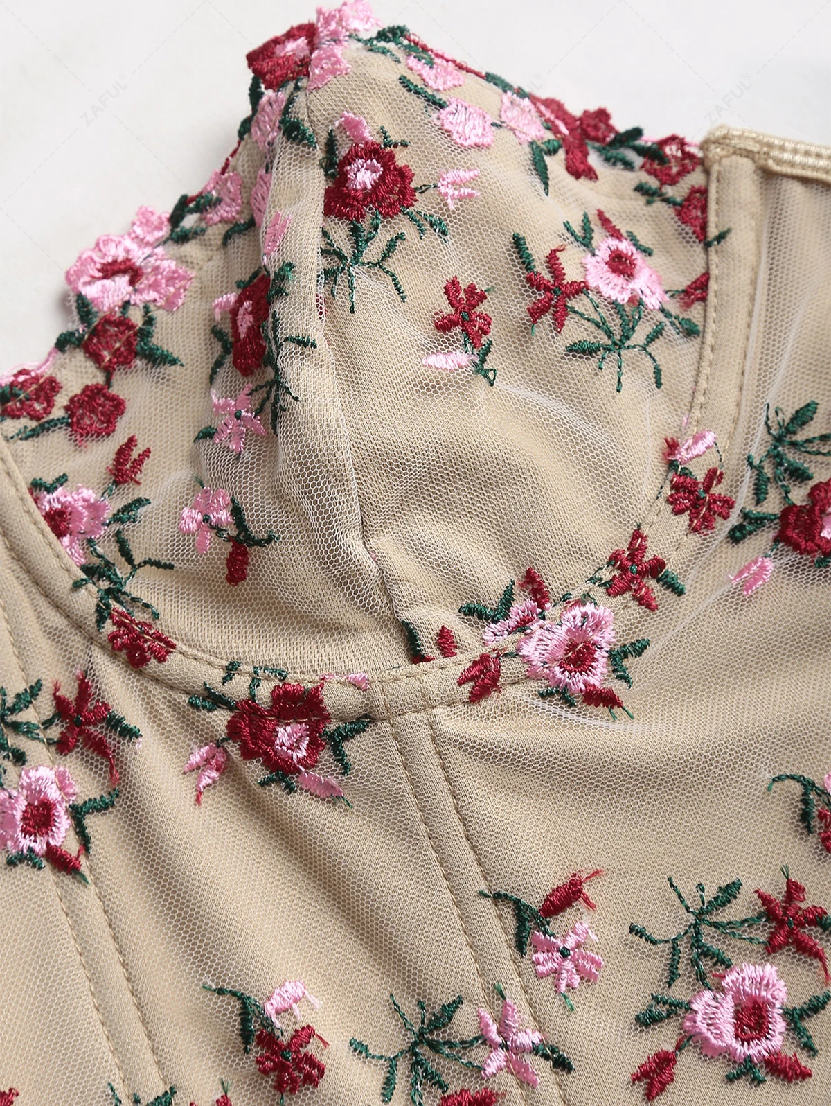 Women’s Sexy Embroidered Floral Hook Back Crop Corset Style Bustier Bandeau Tube Top