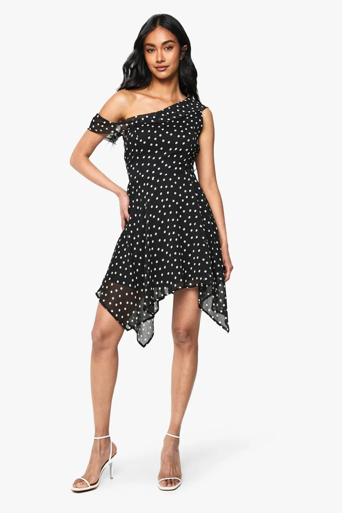 Polka Dot Asymmetric Tie Detail Hanky Hem Mini Dress
